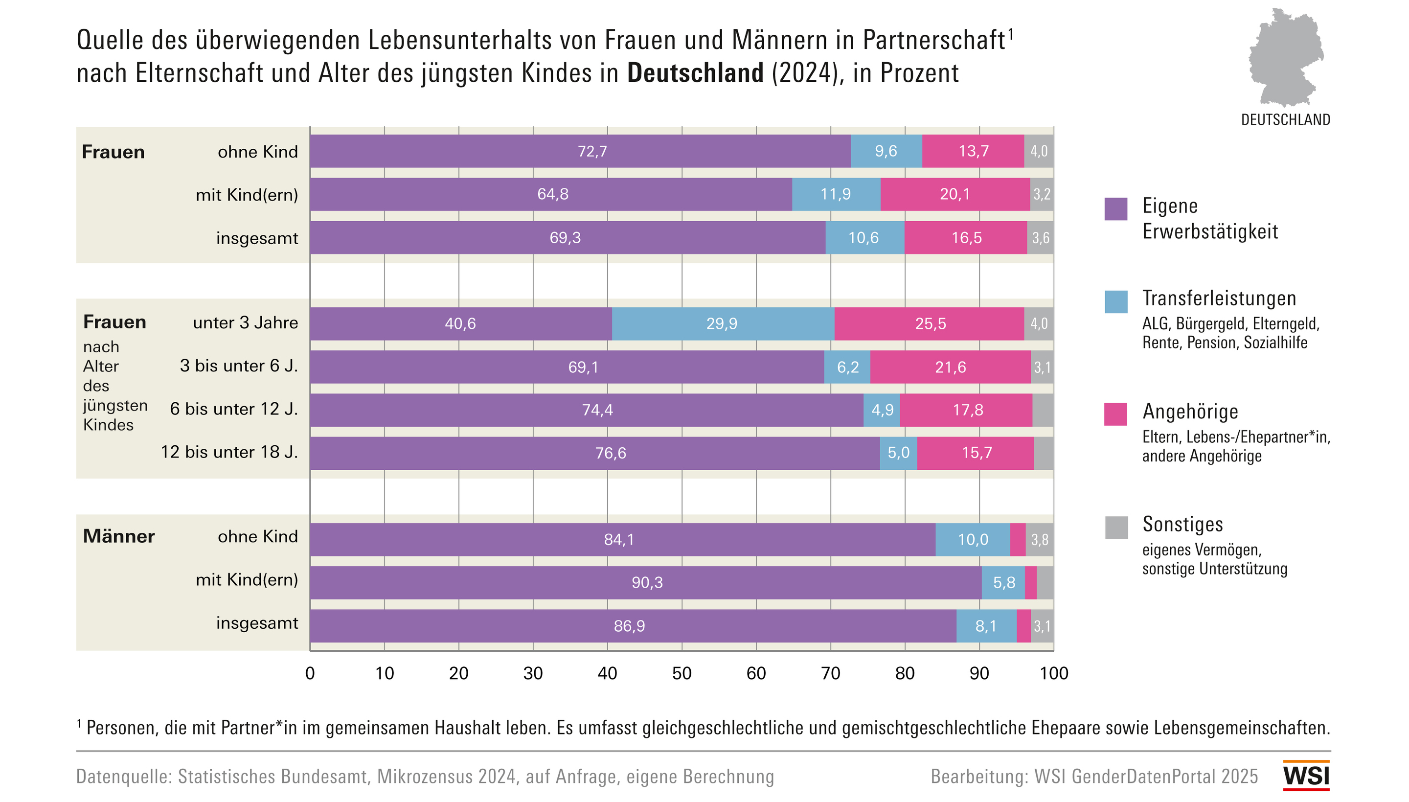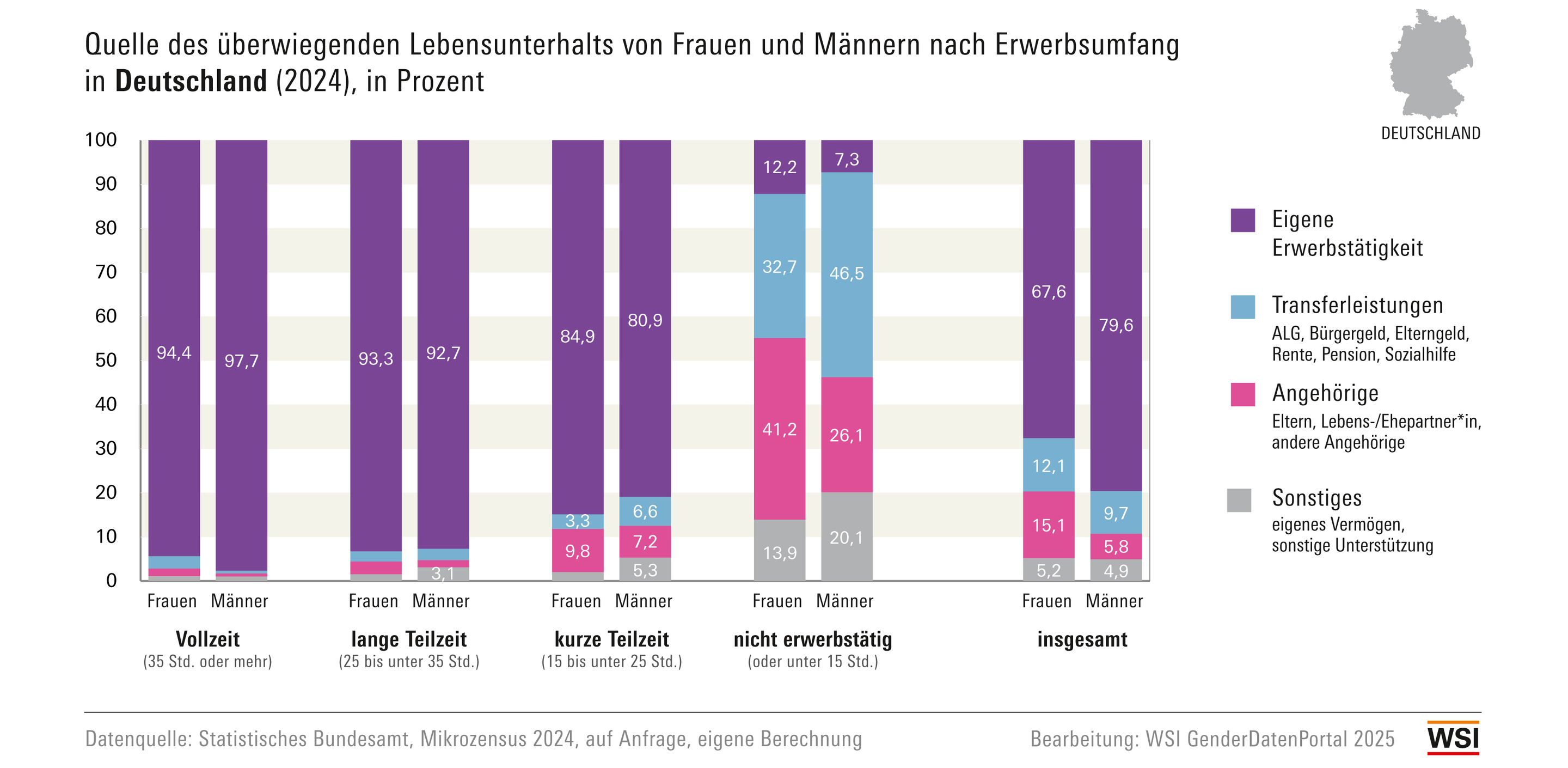 WSI GenderDatenPortal: Einkommen: Quelle des überwiegenden Lebensunterhalts von Frauen und Männern 2024